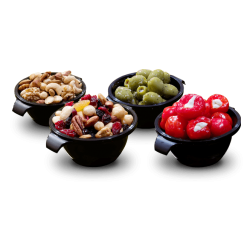 Knabbelgarnituur p.p. Assortiment van verse nootjesmix, olijfjes en kaasblokjes